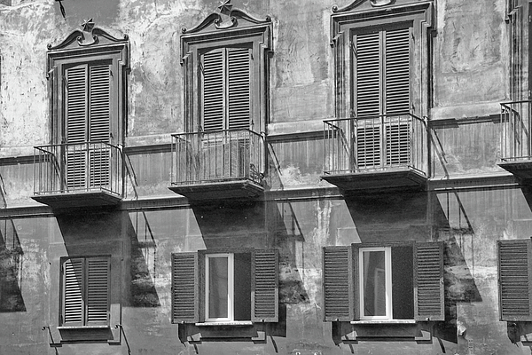 A typical italian facade building with balcony and shutters - windows and balconies in Rome - Italy